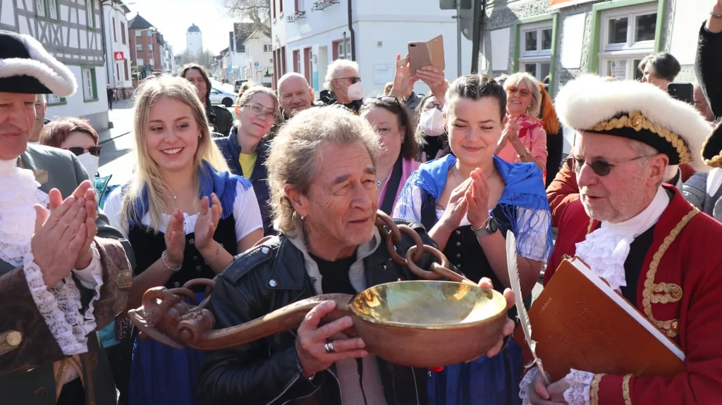 Bei der Ausstellung des Seligenstädter Kunstforum „Hoch die Pinsel“ mit einer außergewöhnlichen Signierstunde von Peter Maffay am 09. April 2022 zählte auch ein Löffeltrunk für den Rockpoeten zu den Höhepunkten.